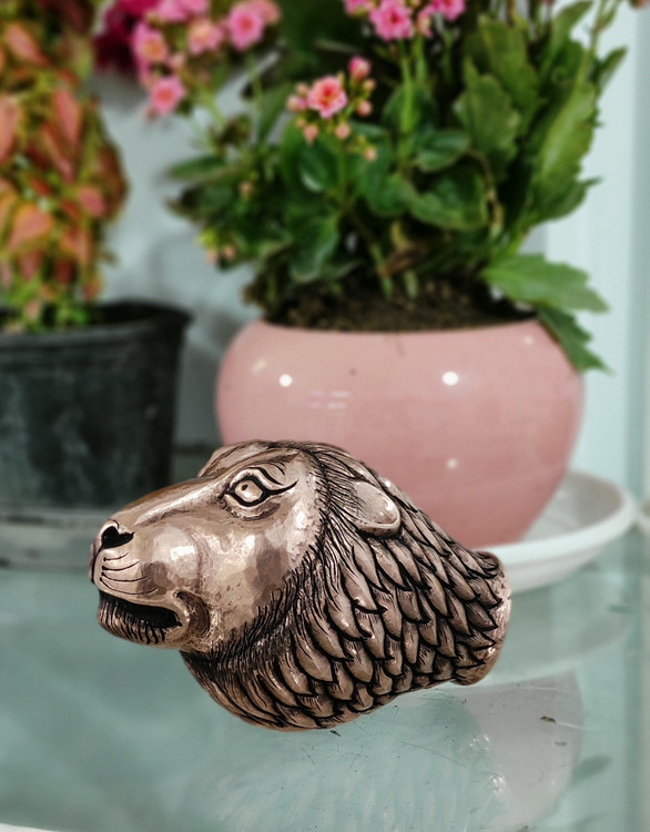 ریتون کله شیر یکپارچه چکشی مسی دستساز که سبک دواتگری و مجسمه سازی و قلمزنی کار شده است